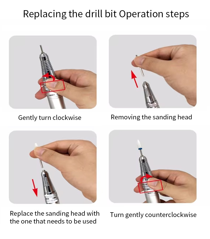 此款30000轉電釘鑽換鑽操作方法,即插即拔,簡單方便,更換完成後即可使用。