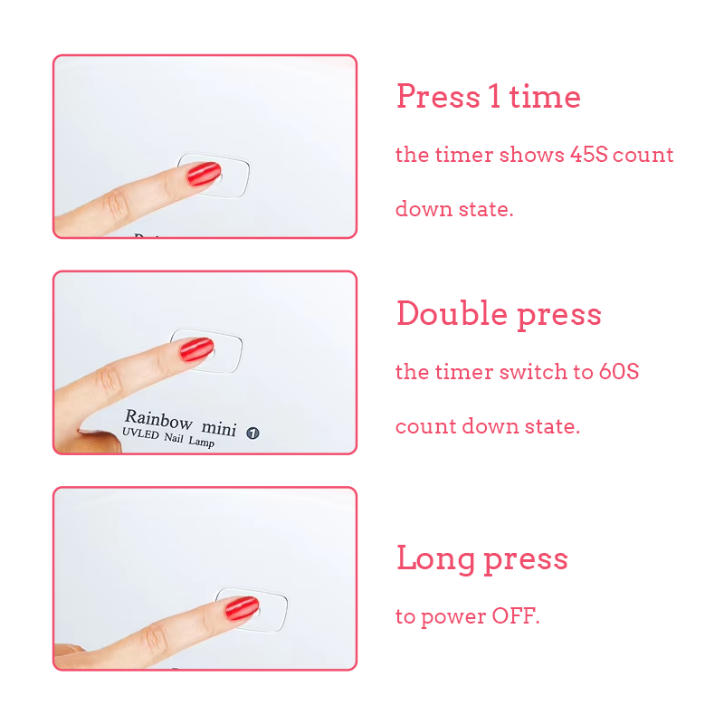 한국어深圳市瑞納光電有限公司作為中國領先的緊湊型凝膠指甲乾燥燈製造商、供應商和出口商,一貫秉承追求完美品質的理念。這一承諾為我們的家用紫外線美甲燈贏得了眾多客戶的信任。卓越的設計、優質的原材料、卓越的性能和極具競爭力的價格——這些正是每個客戶的期望,也是我們所提供的。當然,完善的售後服務同樣不可或缺。