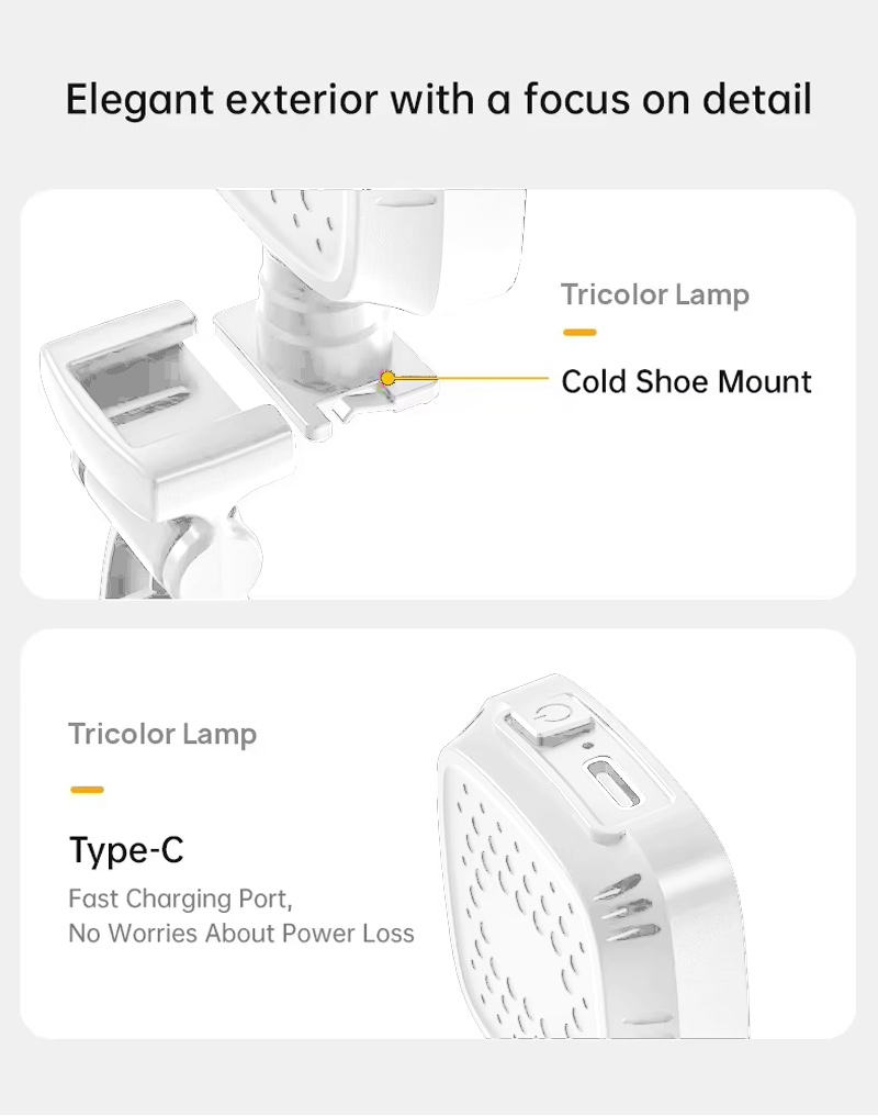 這款小巧的手機攝影燈設計優雅精緻,發出柔和、無刺激的光線。其柔和的光芒模擬黎明的自然光,提供舒適、不刺眼的照明。它非常適合攝影照明,可以完美地增強拍攝對象的外觀。