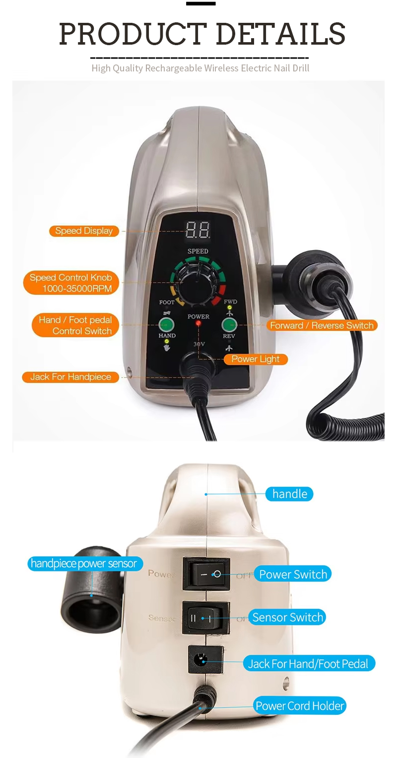 한국어深圳市瑞納光電有限公司領先的中國帶手柄無繩電動指甲銼製造商、供應商和出口商。秉承對產品完美品質的追求,使我們的803高速35000轉指甲油去除器電動指甲銼得到了眾多客戶的滿意。極致的設計、優質的原材料、高性能和有競爭力的價格是每個客戶想要的,這也是我們可以為您提供的。當然,還必不可少的是我們完善的售後服務。