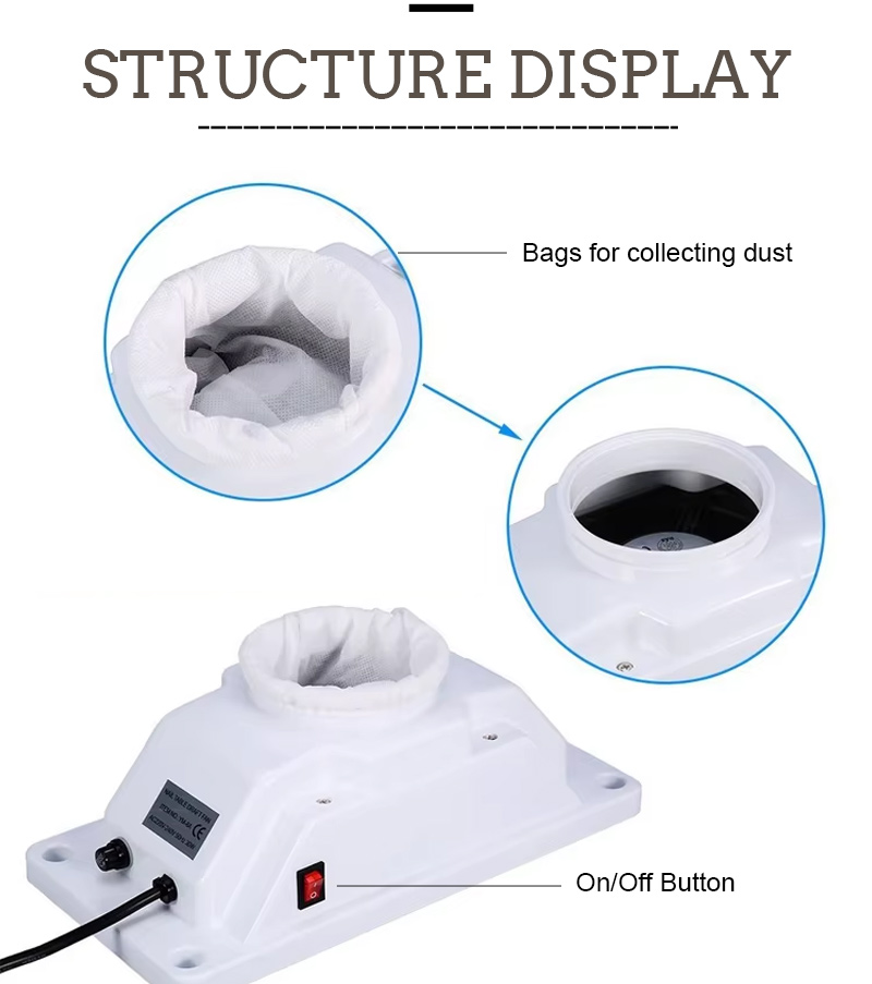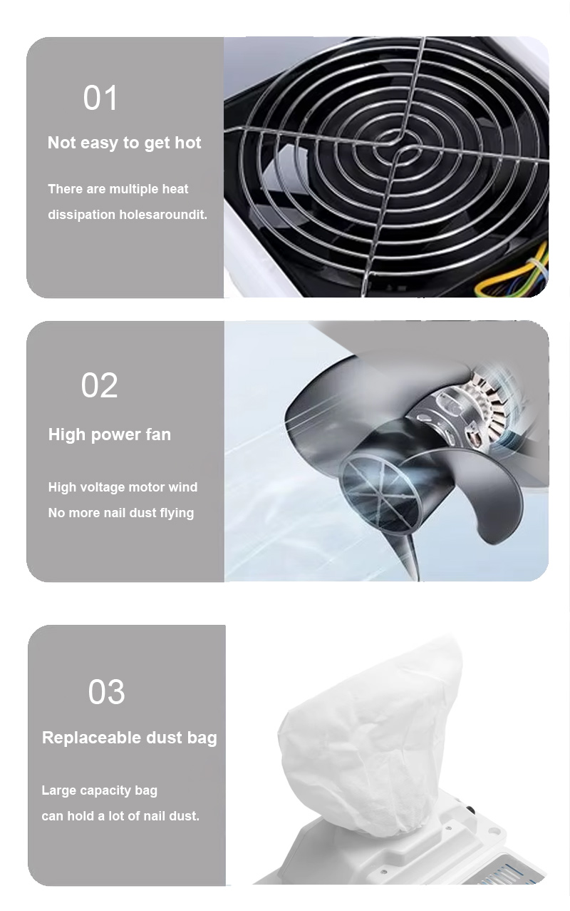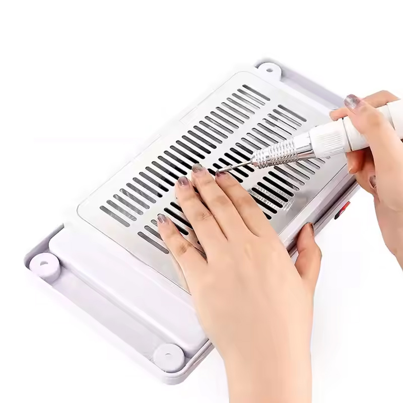 是的。這桌上型嵌入式指甲除塵器 is specifically engineered for no dust leakage. The 45W strong suction power, combined with effective sealing around the intake area, ensures that dust particles are captured at the source rather than escaping back into the workspace. During heavy acrylic filing, the unit maintains consistent suction performance, keeping countertops clean and preventing dust from becoming airborne. For technicians who perform multiple acrylic services daily, this reliable dust capture significantly reduces cumulative dust exposure.