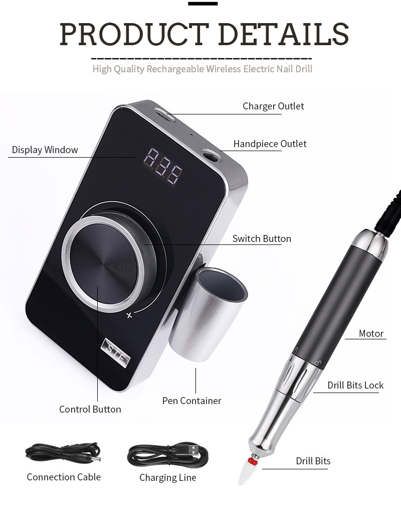 | 去角質 35,000 RPM 電動指甲鑽詳細信息 |