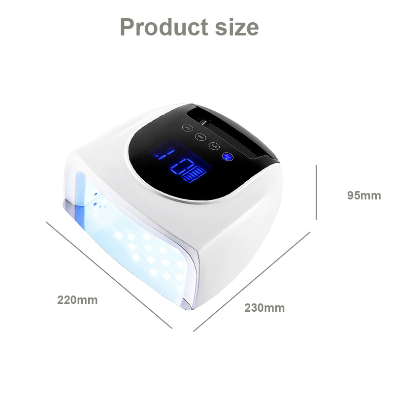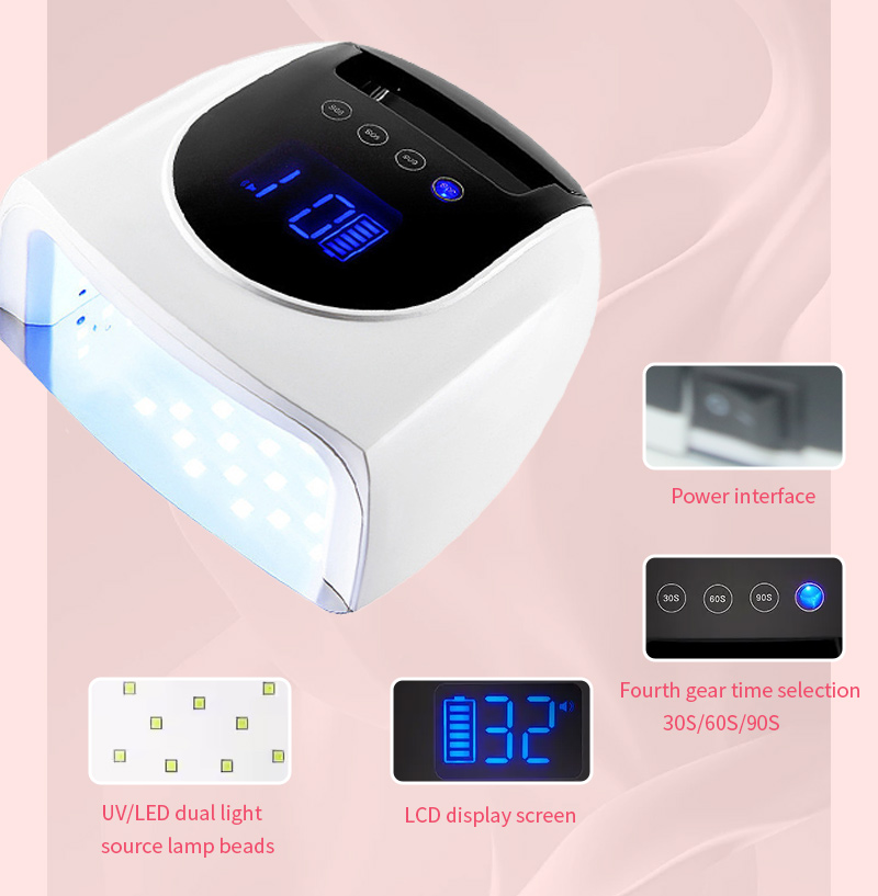該產品保證膠水乾燥均勻,不收縮。其雙光源提供溫和加熱,防止手變色和眼睛疲勞,適合手和腳,提供非常快速的干燥效果。
