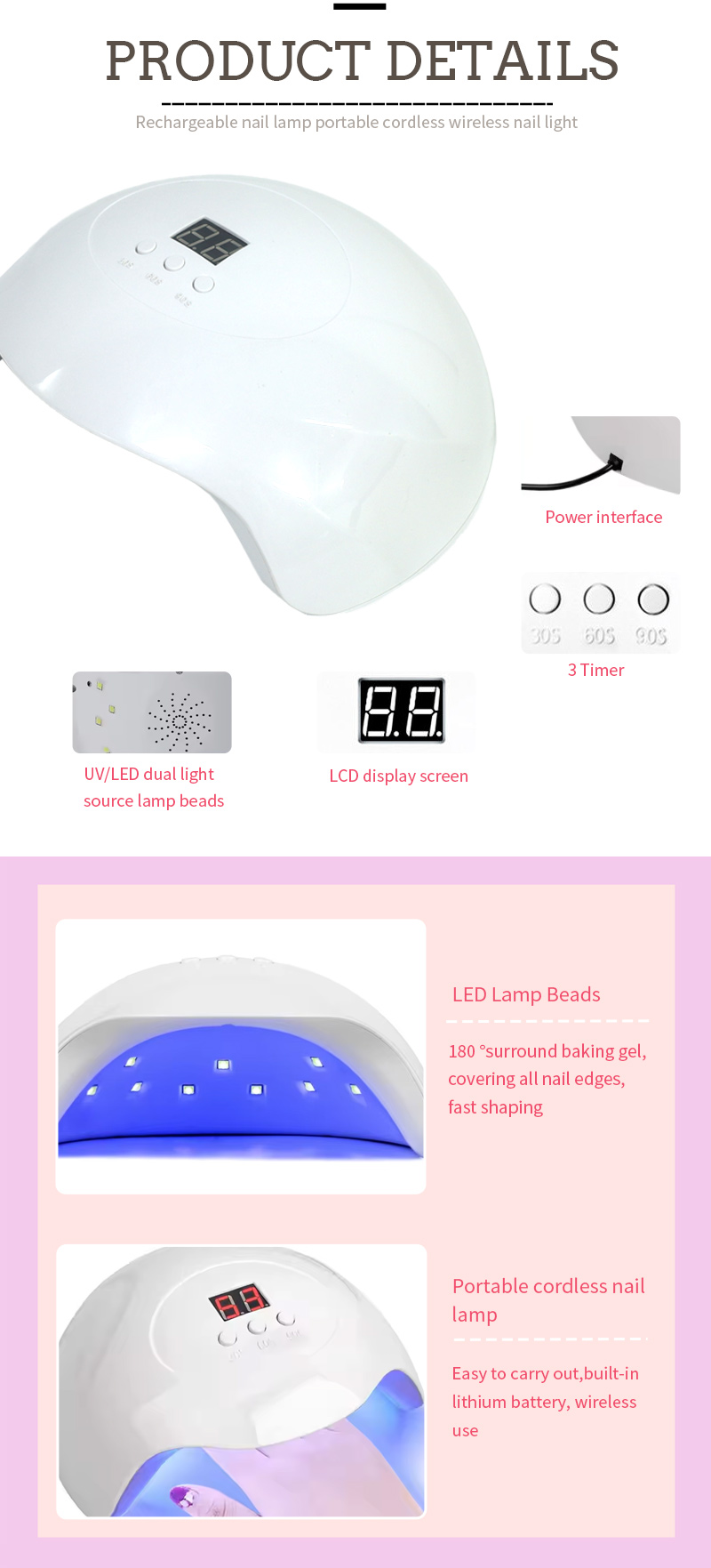 該產品保證膠水乾燥均勻,不收縮。其雙光源提供溫和加熱,防止手變色和眼睛疲勞,適合手和腳,提供非常快速的干燥效果。