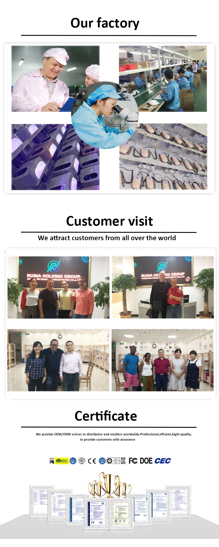 我們為全球分銷商和零售商提供 OEM/ODM 服務。專業、高效、品質卓越,為客戶提供可靠的保證。