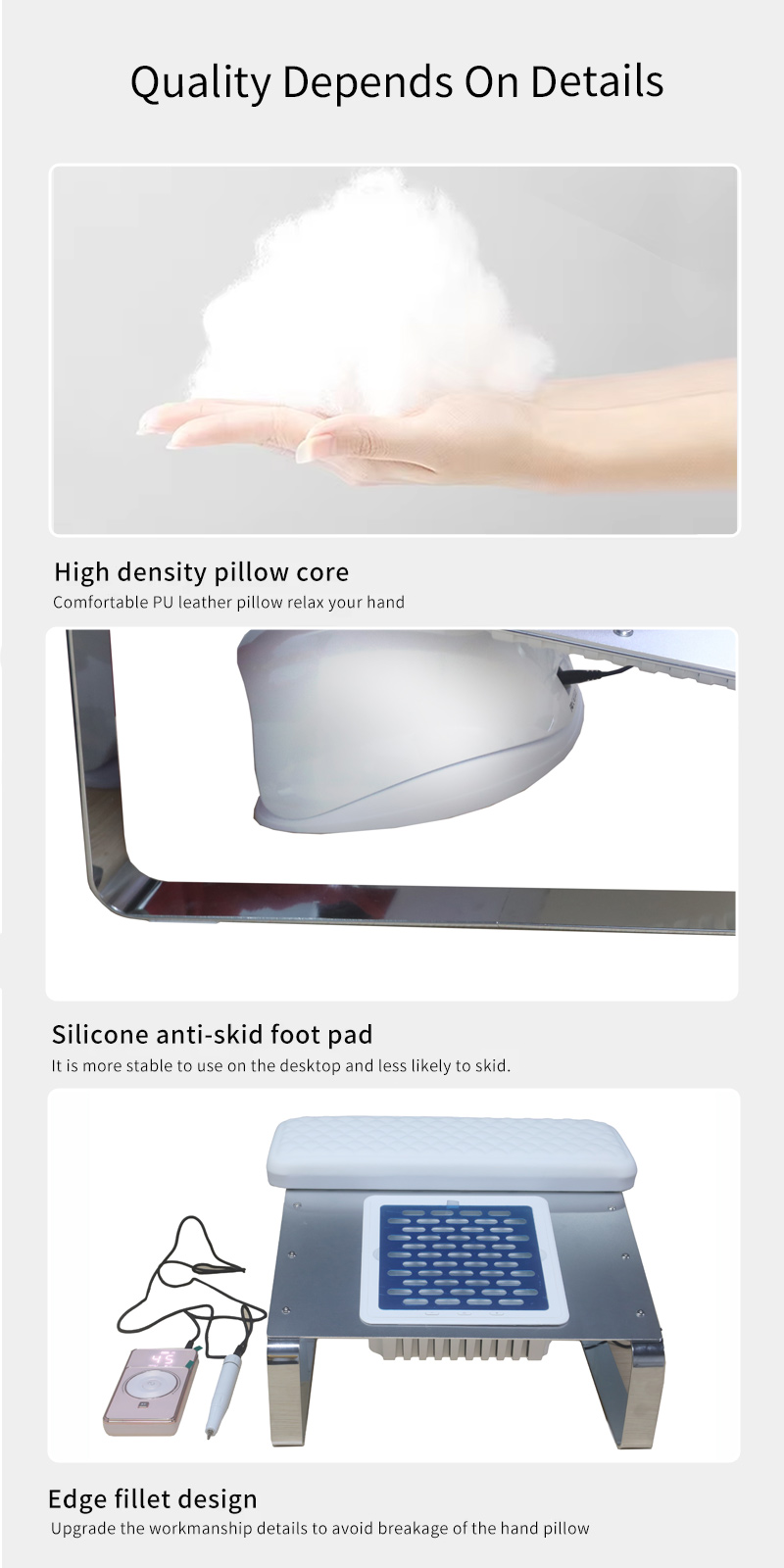 產品強力吸附指甲碎片不漏塵,保持檯面乾淨整潔,快速吸塵不漏塵高功率更高效。