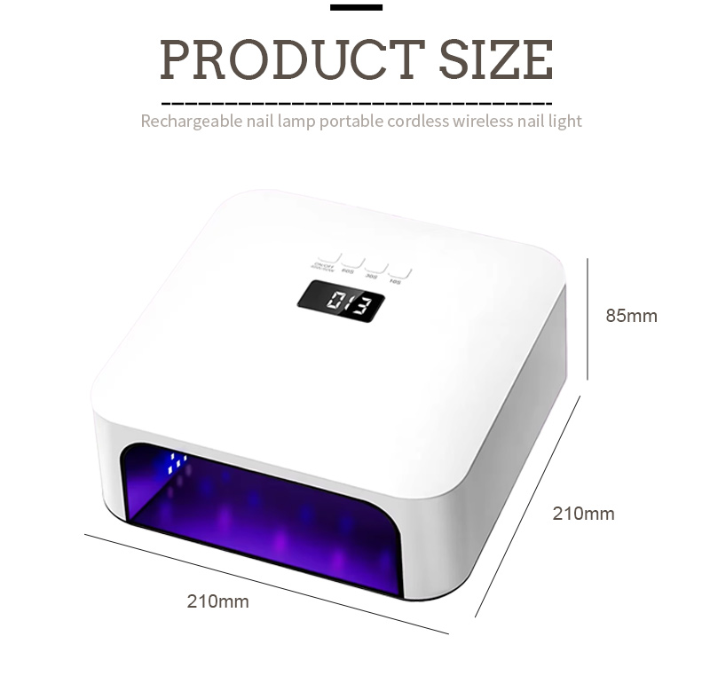 這款高品質快速指甲乾燥燈的尺寸為長210毫米,寬210毫米,高85毫米,容量大,手腳均可使用,非常方便。