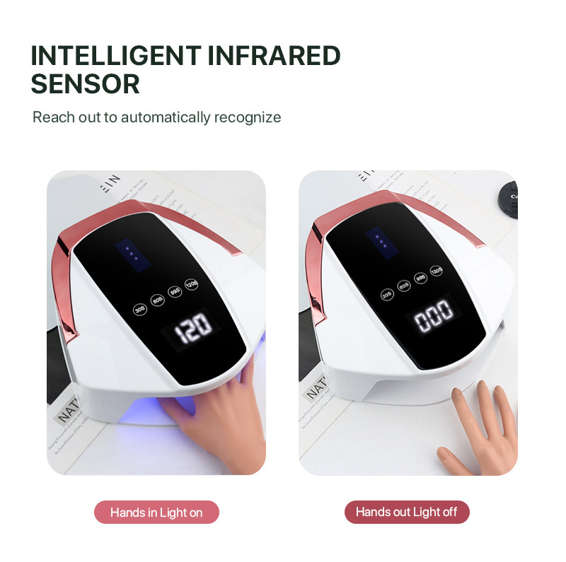 該產品保證膠水乾燥均勻,不收縮。其雙光源提供溫和加熱,防止手變色和眼睛疲勞,適合手和腳,提供非常快速的干燥效果。