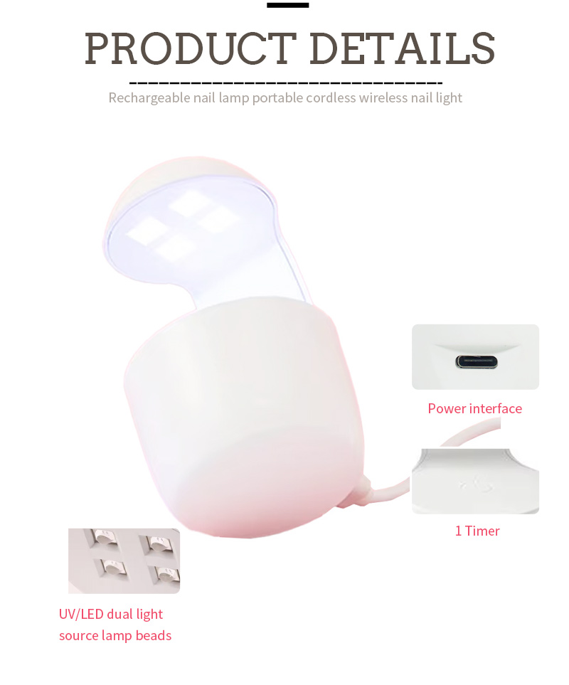 50*50*90毫米深圳市瑞納光電有限公司作為中國領先的家用UV美甲燈製造商、供應商和出口商,一貫秉承追求完美品質的理念。這一承諾為我們的家用紫外線美甲燈贏得了眾多客戶的信任。卓越的設計、優質的原材料、卓越的性能和極具競爭力的價格——這些正是每個客戶的期望,也是我們所提供的。當然,完善的售後服務同樣不可或缺。