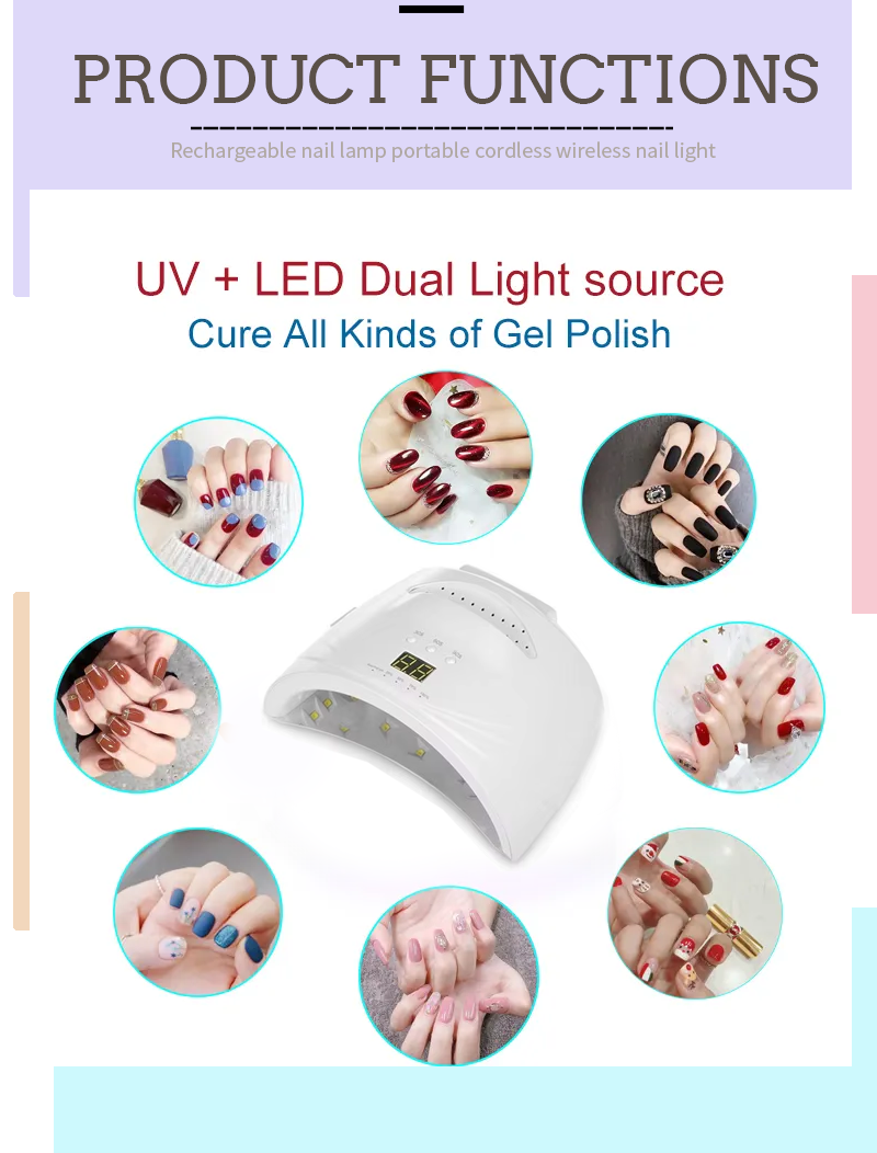 該產品保證膠水乾燥均勻,不收縮。其雙光源提供溫和加熱,防止手變色和眼睛疲勞,適合手和腳,提供非常快速的干燥效果。