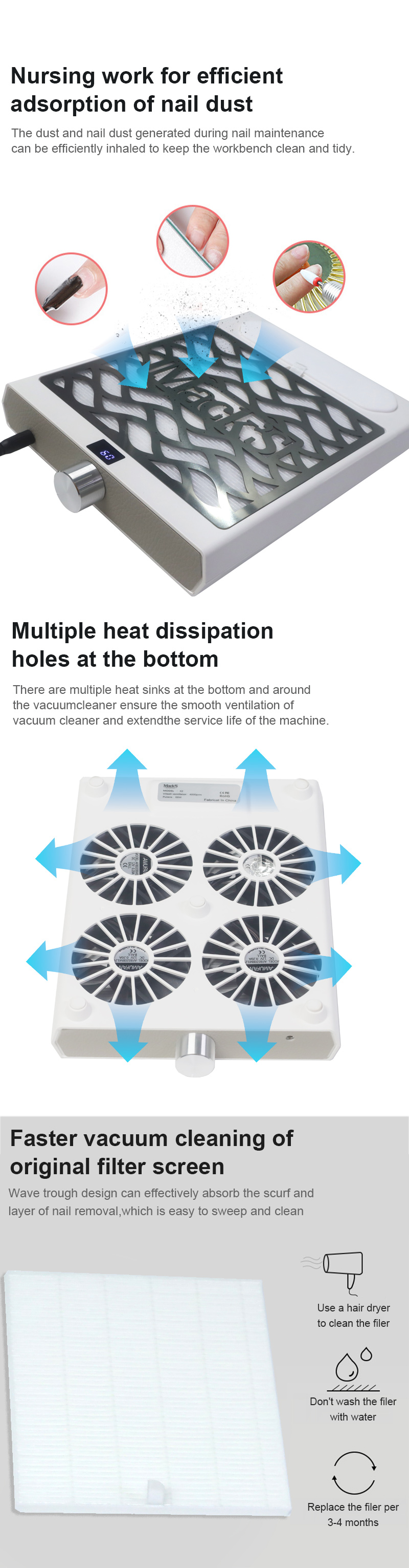 產品強力吸附指甲碎片不漏塵,保持檯面乾淨整潔,快速吸塵不漏塵高功率更高效。