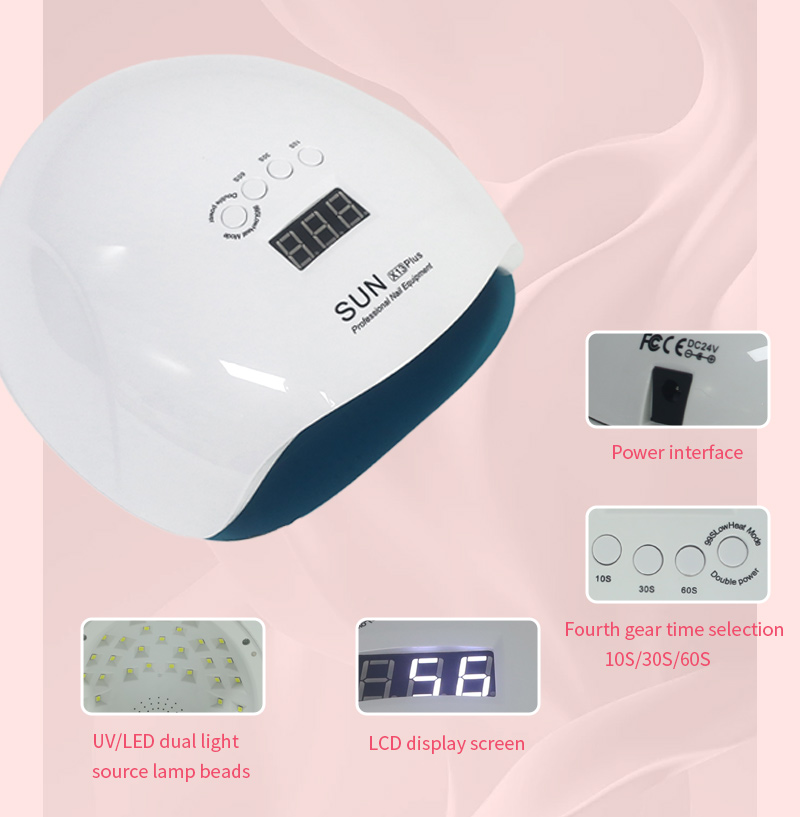 該產品保證膠水乾燥均勻,不收縮。其雙光源提供溫和加熱,防止手變色和眼睛疲勞,適合手和腳,提供非常快速的干燥效果。