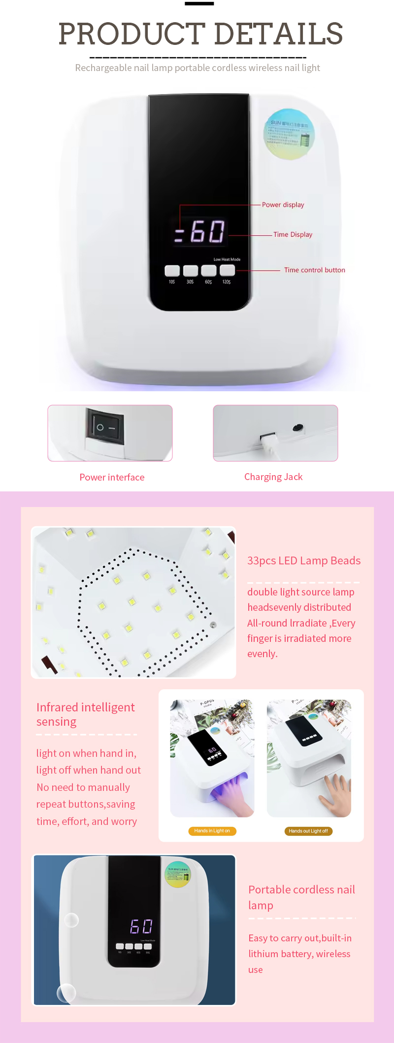 該產品保證膠水乾燥均勻,不收縮。其雙光源提供溫和加熱,防止手變色和眼睛疲勞,適合手和腳,提供非常快速的干燥效果。