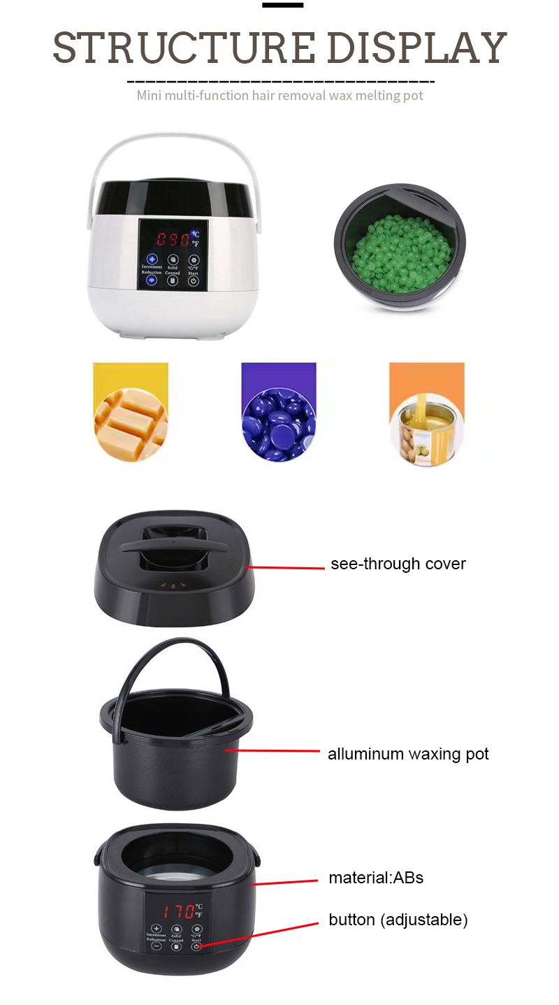大容量,可融化多種蠟豆。 ABS工程塑料外殼,耐高溫,外殼更加光澤。