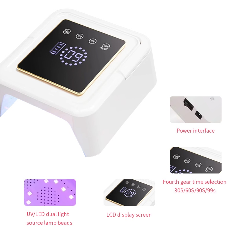 The square nail drying lamp ensures even glue drying without shrinkage.其雙光源提供溫和加熱,防止手變色和眼睛疲勞,適合手和腳,提供非常快速的干燥效果。