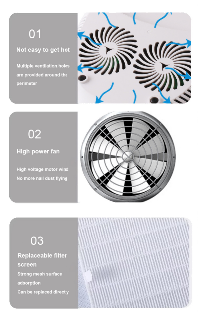 帶枕頭的三重組合手持式美甲燈確保膠水乾燥均勻且不收縮。其雙光源提供溫和加熱,防止手變色和眼睛疲勞,適合手和腳,提供非常快速的干燥效果。