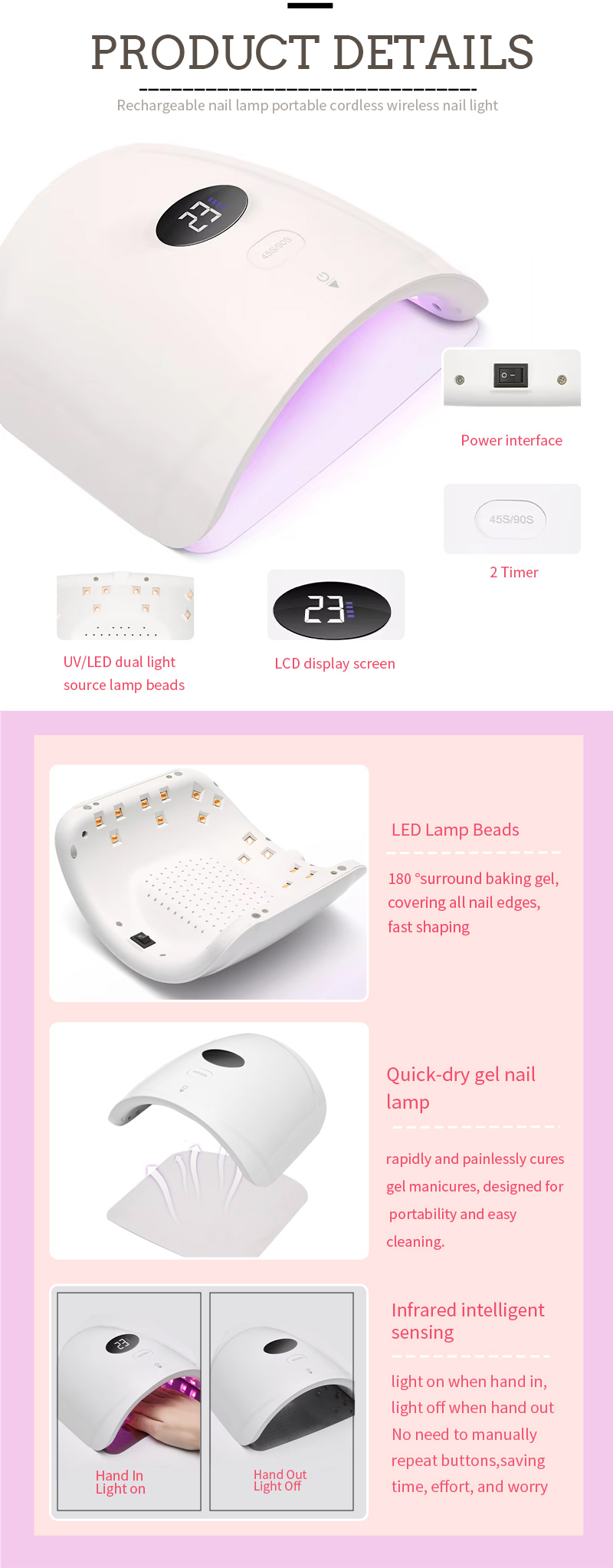 15600毫安時深圳市瑞納光電有限公司作為中國領先的家用UV美甲燈製造商、供應商和出口商,一貫秉承追求完美品質的理念。這一承諾為我們的家用紫外線美甲燈贏得了眾多客戶的信任。卓越的設計、優質的原材料、卓越的性能和極具競爭力的價格——這些正是每個客戶的期望,也是我們所提供的。當然,完善的售後服務同樣不可或缺。