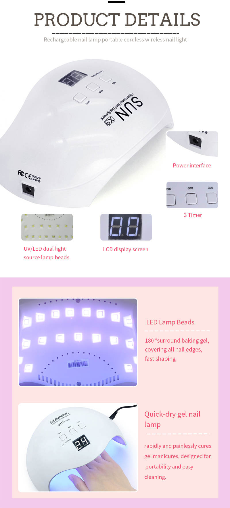該產品保證膠水乾燥均勻,不收縮。其雙光源提供溫和加熱,防止手變色和眼睛疲勞,適合手和腳,提供非常快速的干燥效果。